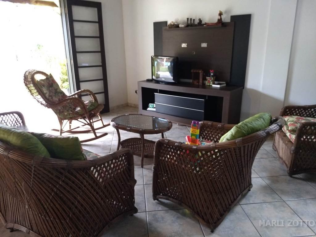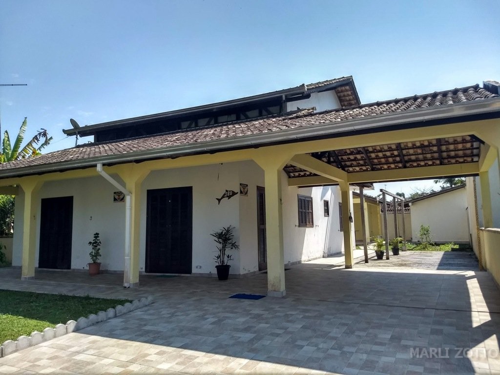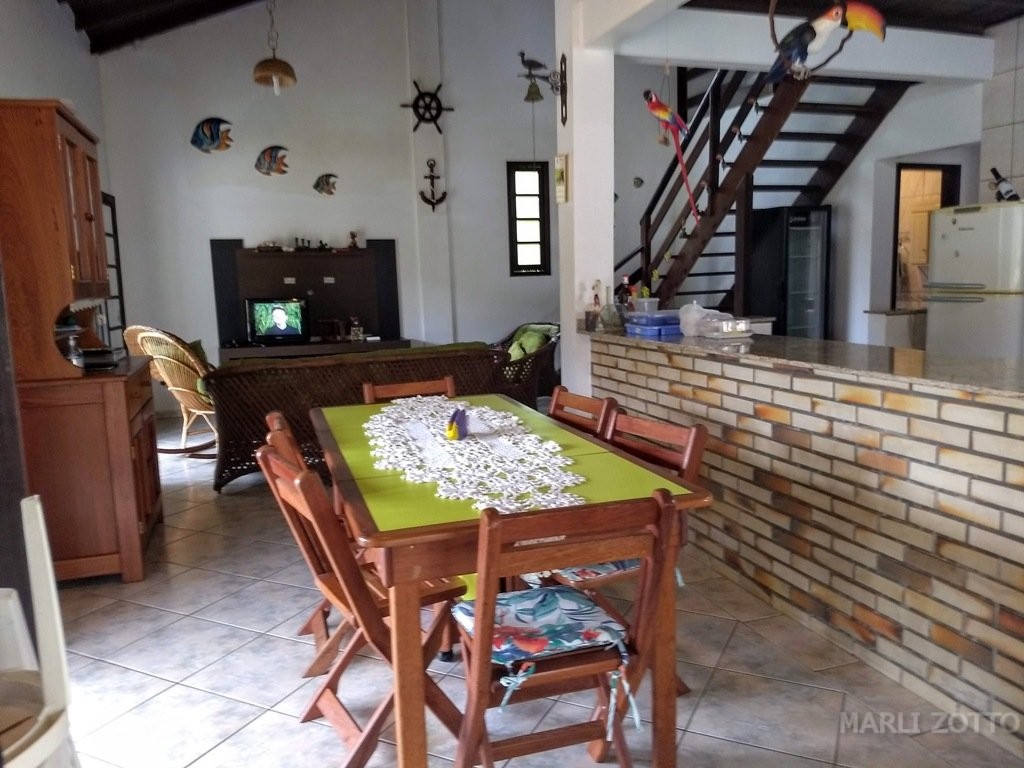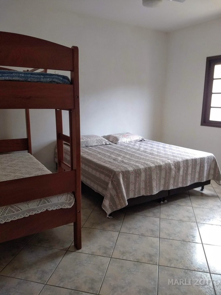 Casa linda em estilo diferenciado, muito confortável, situada na Rua 1.330 - Carlos Afonso Frings, 280 no Balneário Itapoá - SC, contendo jardim e quintal gramado e calçado. Área coberta para carro, amplas varandas. CASA PRINCIPAL parte térrea: Sala de estar, copa e cozinha com pé direito alto, área de circulação, 2 dormitórios e 2 banheiros sociais, acesso por escada para piso superior : Um mezanino que pode ser usado como dormitório, mais 2 dormitórios, sendo uma suíte com saída para sacada. Ao todo: 4 camas de casal, 2 beliches, 1 cama box de solteiro e 2 colchões de solteiro. O imóvel está bem mobiliado e superequipado com TV, 2 ventiladores de teto, 1 ventilador de chão, mesa grande para 12 pessoas, fogão 6 bocas, geladeira duplex grande, além de uma excelente cervejeira, louças, talheres, panelas, eletrodomésticos e demais utensílios suficientes para atender até 15 pessoas, no máximo. Nos fundos edícula com churrasqueira, além de serviço (tanquinho de lavar roupas) e 1 banheiro completo.