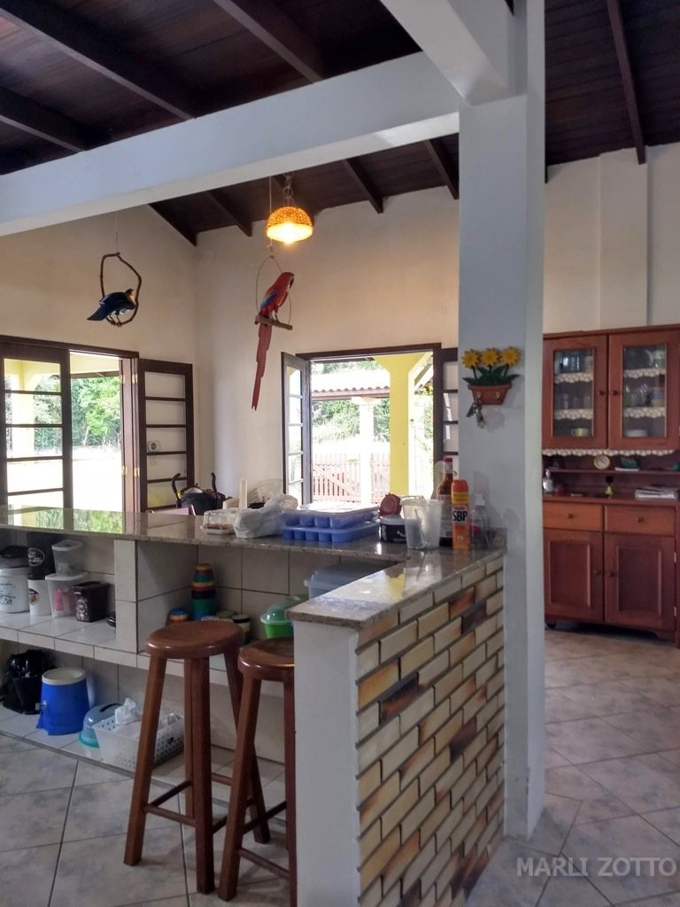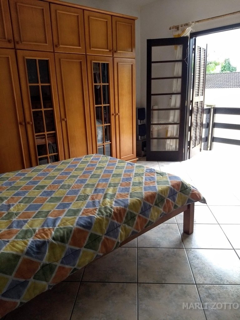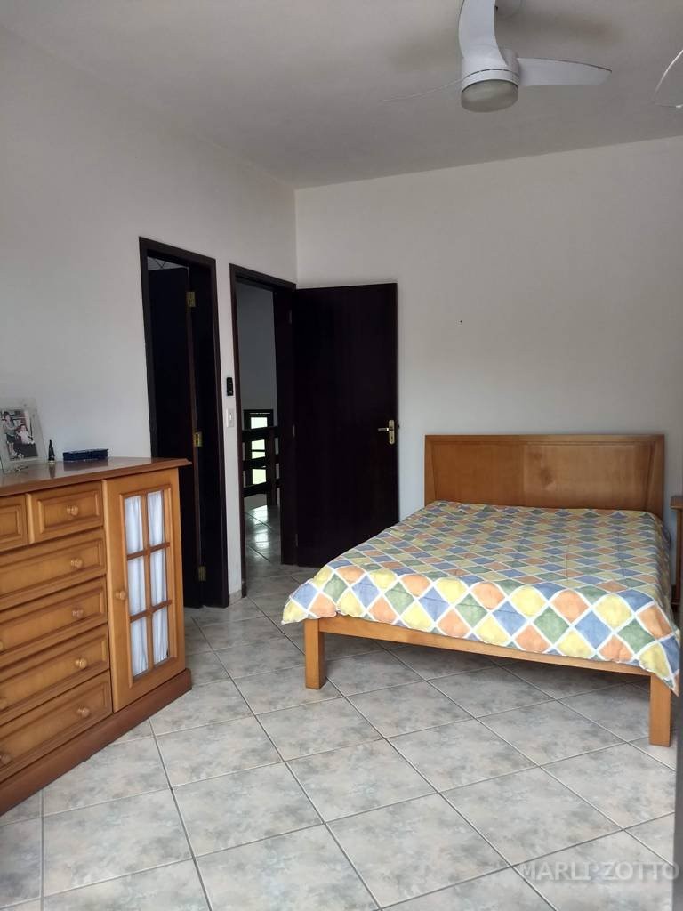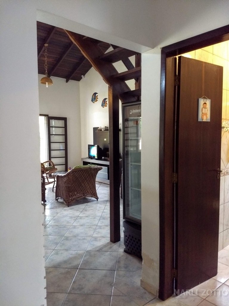 Casa linda em estilo diferenciado, muito confortável, situada na Rua 1.330 - Carlos Afonso Frings, 280 no Balneário Itapoá - SC, contendo jardim e quintal gramado e calçado. Área coberta para carro, amplas varandas. CASA PRINCIPAL parte térrea: Sala de estar, copa e cozinha com pé direito alto, área de circulação, 2 dormitórios e 2 banheiros sociais, acesso por escada para piso superior : Um mezanino que pode ser usado como dormitório, mais 2 dormitórios, sendo uma suíte com saída para sacada. Ao todo: 4 camas de casal, 2 beliches, 1 cama box de solteiro e 2 colchões de solteiro. O imóvel está bem mobiliado e superequipado com TV, 2 ventiladores de teto, 1 ventilador de chão, mesa grande para 12 pessoas, fogão 6 bocas, geladeira duplex grande, além de uma excelente cervejeira, louças, talheres, panelas, eletrodomésticos e demais utensílios suficientes para atender até 15 pessoas, no máximo. Nos fundos edícula com churrasqueira, além de serviço (tanquinho de lavar roupas) e 1 banheiro completo.
