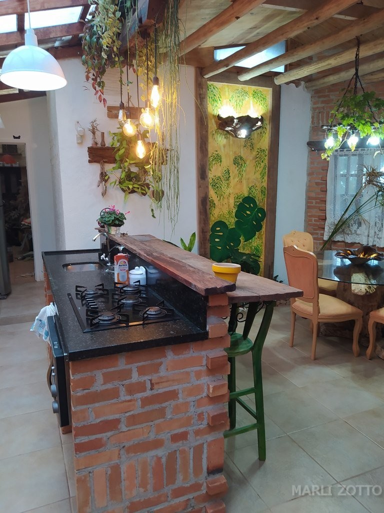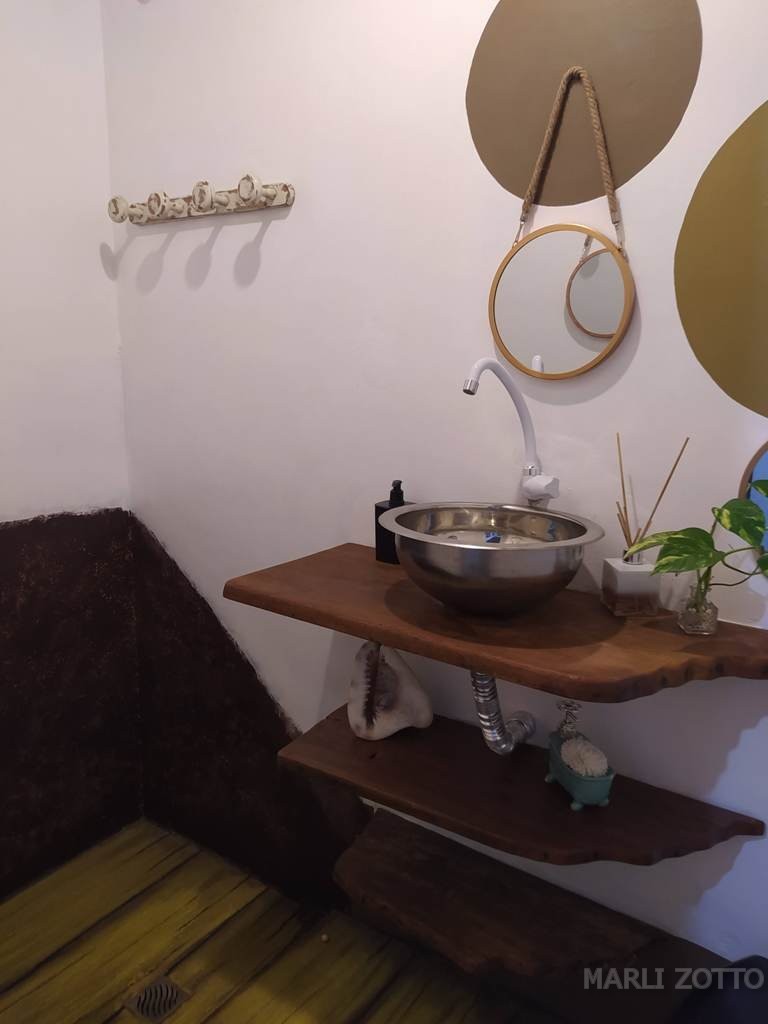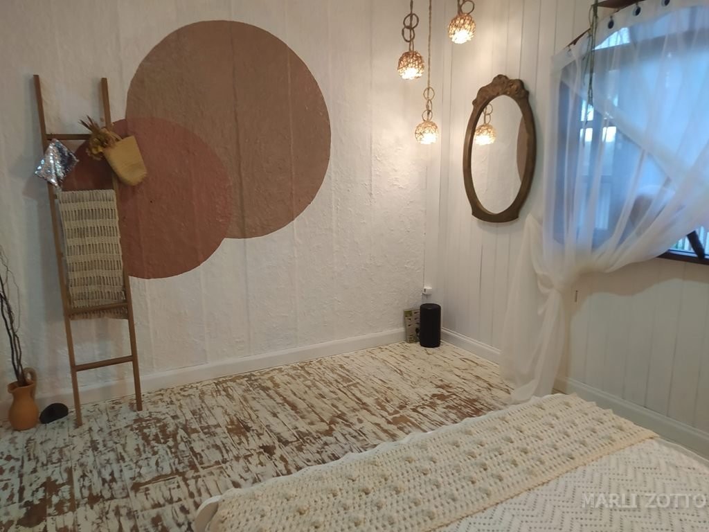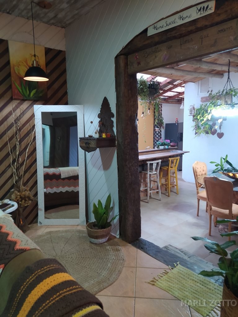 INTERNAMENTE: Copa e cozinha conjugadas com saída para um espaço externo charmoso, com viveiro de plantas. Sala de estar com sofá super confortável, TV, 3 dormitórios com camas de casal e 1 colchão extra (se necessário), banheiro completo. Ar condicionado em um dos dormitórios, ventiladores de teto nos demais. O imóvel está bem mobiliado, a cozinha bem equipada com fogão de lenha, fogão de mesa, forno elétrico, panela e chaleira elétrica, microondas, liquidificador, louças, panelas, talheres e demais utensílios suficientes para atender até 8 pessoas confortavelmente.