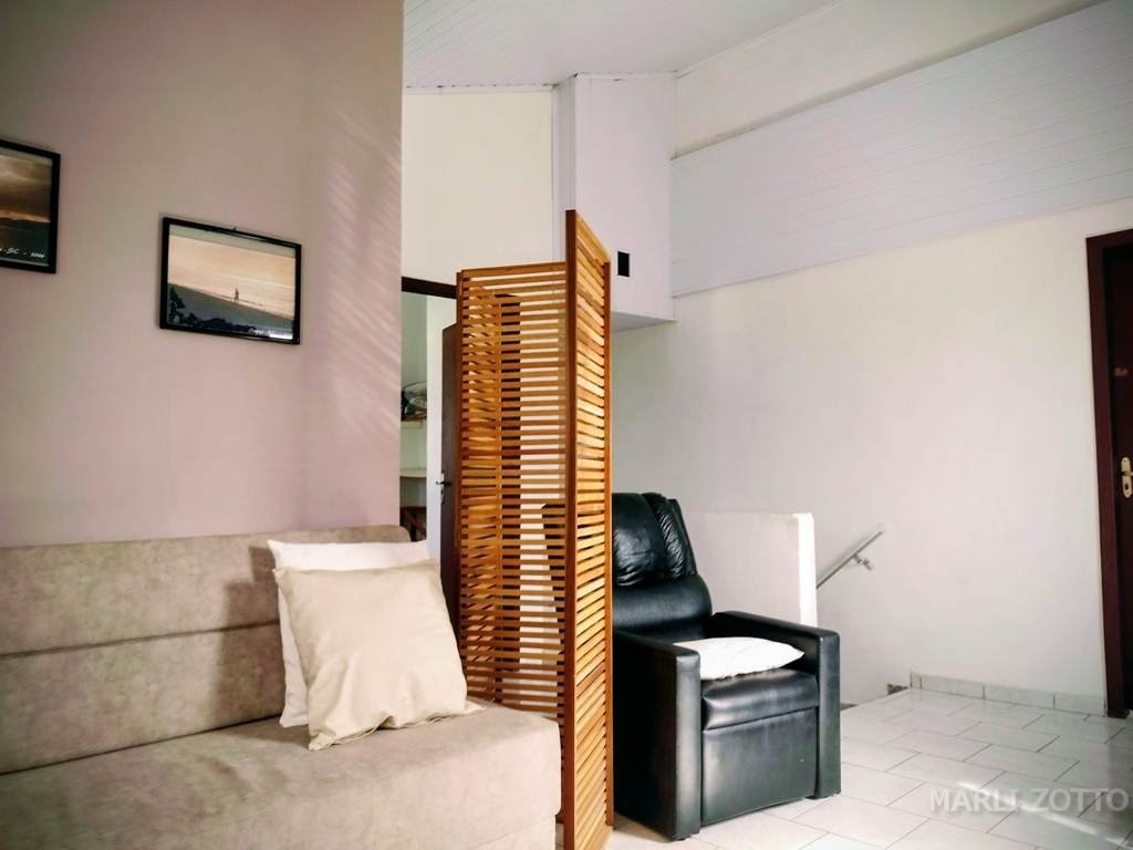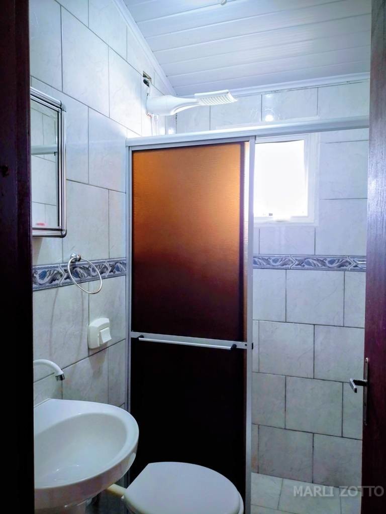 INTERNAMENTE: Piso térreo cozinha bem equipada , com armários, geladeira duplex, fogão 4 bocas, forno elétrico, micro-ondas, liquidificador, batedeira, bancada com pia; louças, panelas, talheres e demais equipamentos suficientes para atender até 10 pessoas. Banheiro social completo, saída para varanda . Piso superior : acesso pela churrasqueira, Sala de estar com TV, sofá cama, banheiro completo, mais 1 dormitório com cama de casal, ar condicionado, 1 dormitório contendo 3 camas de casal (sendo cada cama separada por parede em madeira) e acesso por espaço de uso comum. COLCHÕES novos e excelentes.