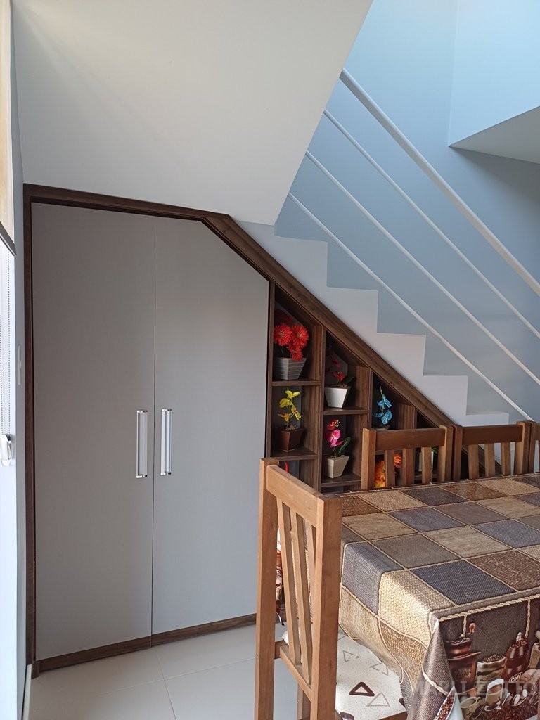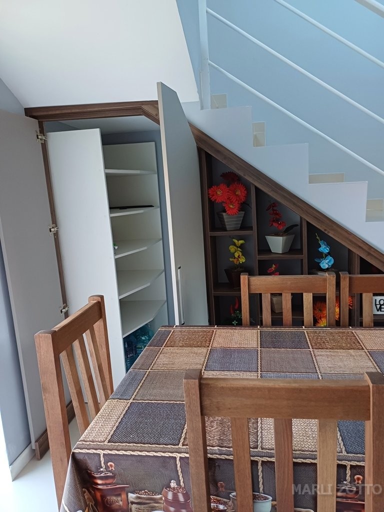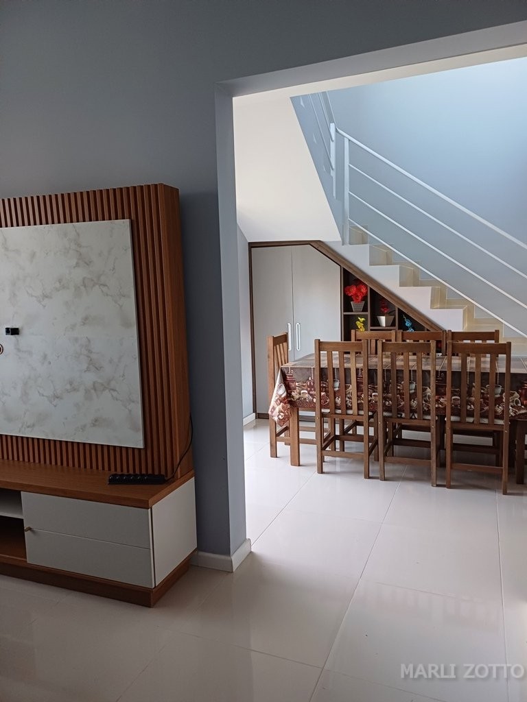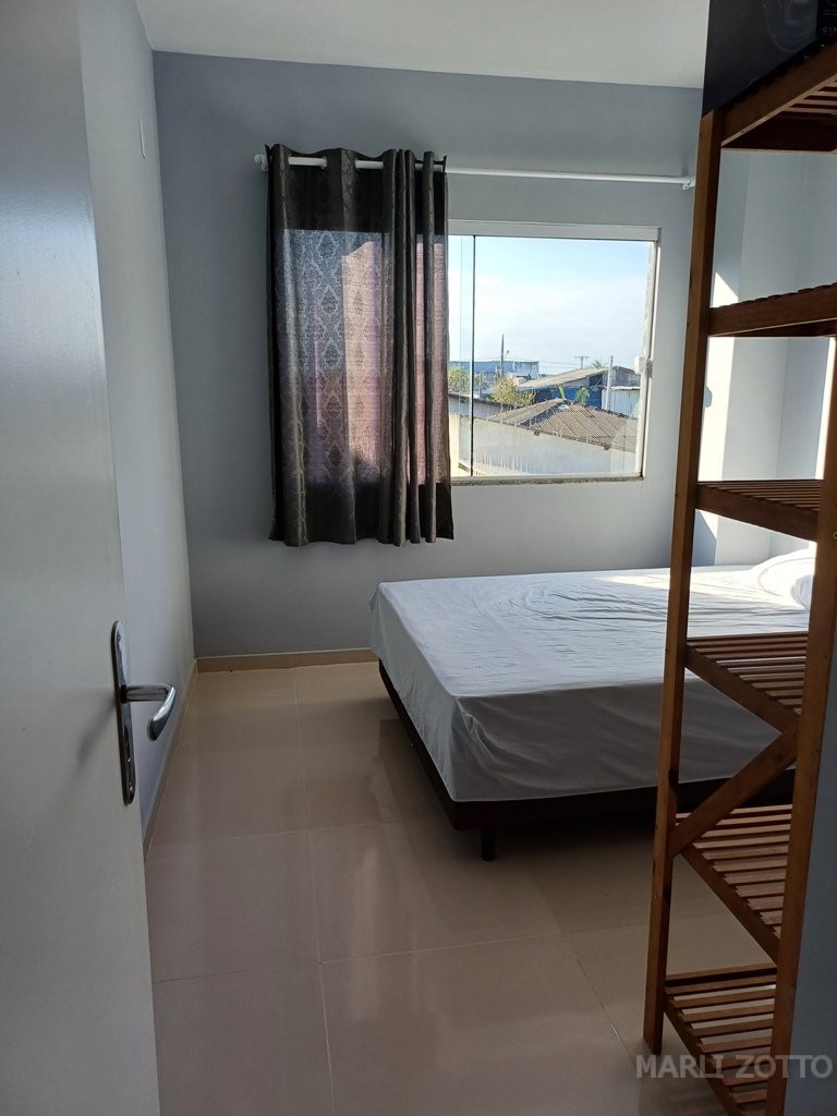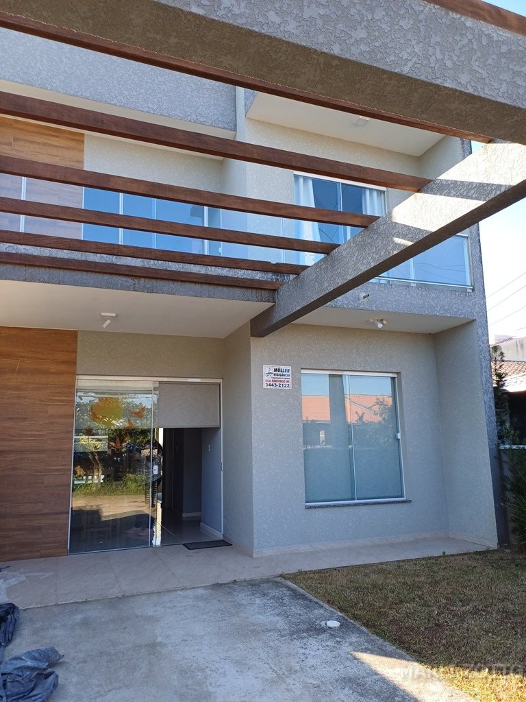 Excelente SOBRADO NOVO, projeto arquitetônico bonito, padrão de construção muito bom. Laje, telhas em barro, aberturas em alumínio e vidros, piso porcelanato. Está localizado na Rua RECANTO DA PAZ, nº 881 – Balneário São José II em Itapema do Norte, Itapoá SC, edificado no Lote 20-2 da quadra 014 , lote esse medindo 202,18 m2 e com área construída de 115,79 m2 . Contém jardim na frente do imóvel e quintal nos fundos, área descoberta para um carro. INTERNAMENTE: Sala de estar com RACK e sofá confortável, copa e cozinha conjugadas, lavabo, acesso por escada para o piso superior. Espaço embaixo da escada, bem aproveitado para depósito e armários. Área de lazer, churrasqueira e pia, área de serviço com tanque e máquina de lavar. PISO SUPERIOR: área de circulação, varandas amplas na frente e nos fundos, vista panorâmica da Serra do Mar e cidade. Banheiro social completo, 3 dormitórios, sendo uma suíte. Todos com acesso às varandas. O imóvel está mobiliado e bem equipado com móveis da cozinha planejados, mesa com cadeiras, eletrodomésticos (geladeira duplex, fogão de mesa e demais utensílios). Nos dormitórios camas de casal. Banheiros com armários e Box em vidro temperado.